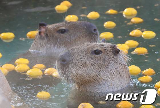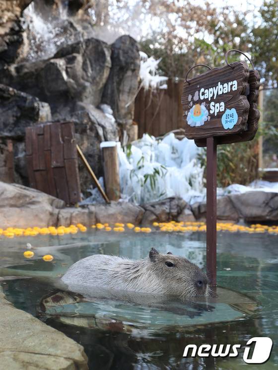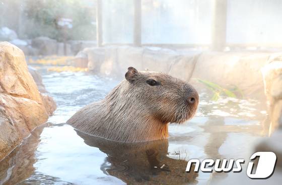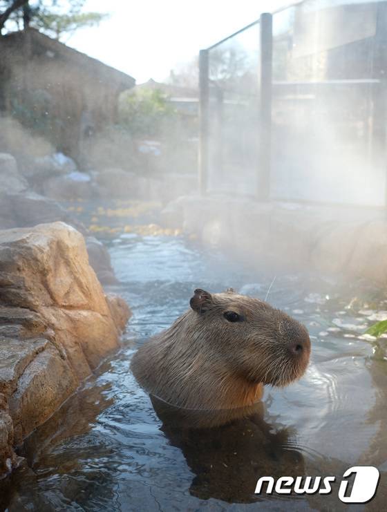 요즘 날씨가 정말 쌀쌀한데요~ 카피바라가 따뜻하게 온천욕을 즐기고 있네요!