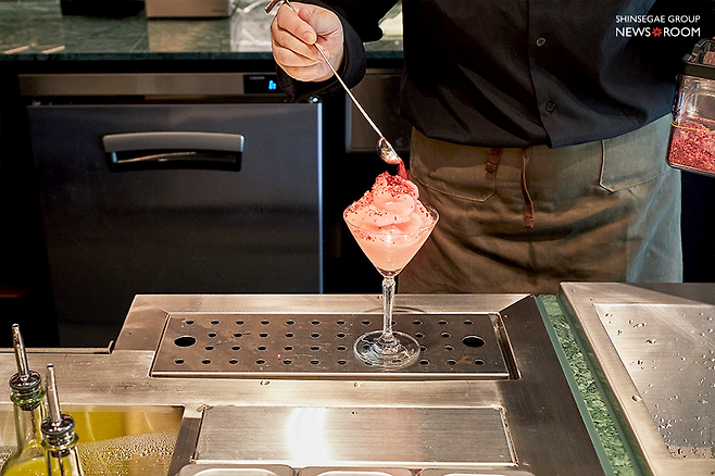 여기에 장충라운지R점만의 특별한 공간이 하나 더 있다. 바로 ‘믹솔로지바’다. 믹솔로지는 ‘Mix(섞다)’와 ‘Technology(기술)’가 결합한 말로 주류에 다른 음료나 과일, 아이스크림 등 다양한 재료를 더해 즐기는 것을 뜻한다. 믹솔로지바를 국내에 도입한 스타벅스는 장충라운지R점이 최초다.