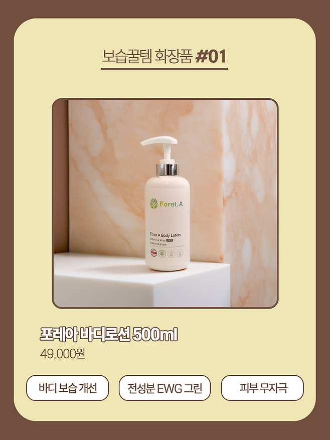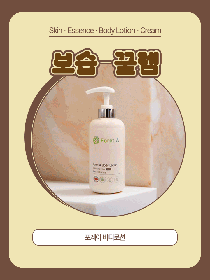 첫 번째로 소개할 보습 꿀템 화장품 추천 제품은 온 가족 모두 쓸 수 있는 무자극 바디케어 제품, 포레아 바디로션이다.