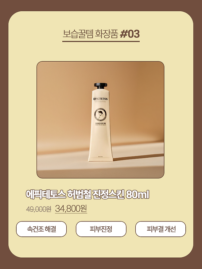 세 번째로 추천할 보습 꿀템 화장품 추천 제품은 에픽테토스 허범철 진정스킨이다.