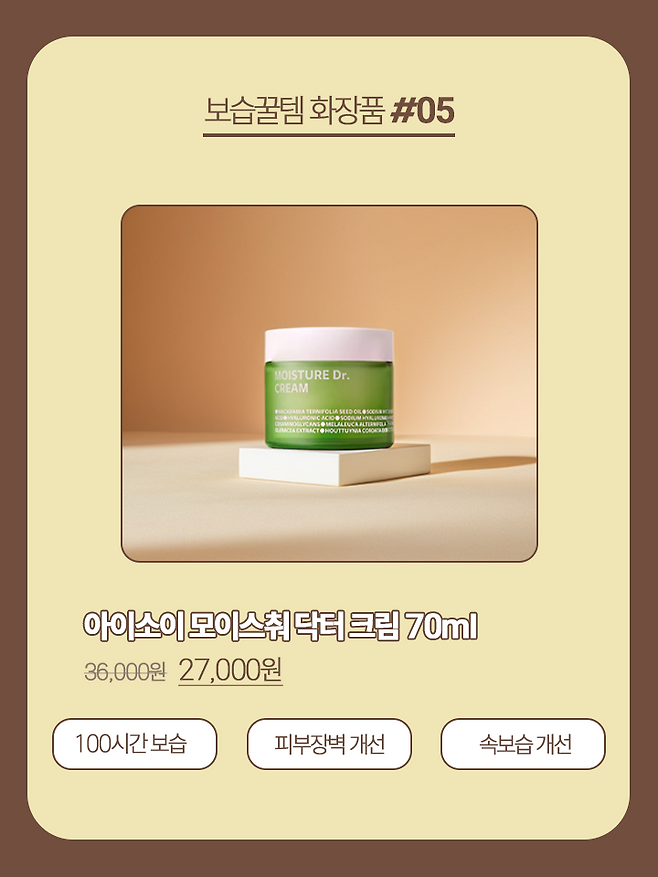 다섯 번째로 추천할 보습 꿀템 화장품 추천 제품은 아이소이 모이스춰 닥터 크림이다.