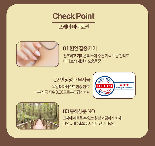 인체적용시험을 통해 건조하고 가려운 피부의 원인을 집중 파악하여 만들어졌기 때문에 바디로션 하나로도 보습 관리와 수분 충전이 모두 가능하다.