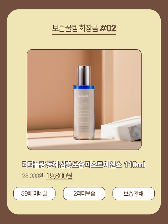 다음으로 추천할 보습 꿀템 화장품 추천 제품은 라타플랑의 동해 심층 보습 미스트 에센스이다.