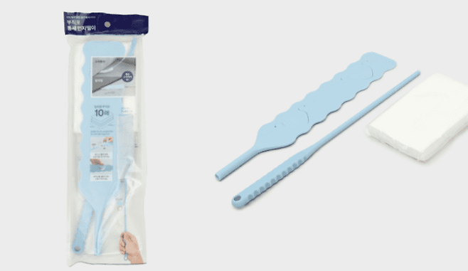 탄탄하지만 유연성 있는 헤드에 부직포를 끼워 냉장고 밑, 소파 틈새, 침대 밑을 쓸어주면 손쉽게 먼지를 제거 할 수 있게 도와주는 꿀템입니다.