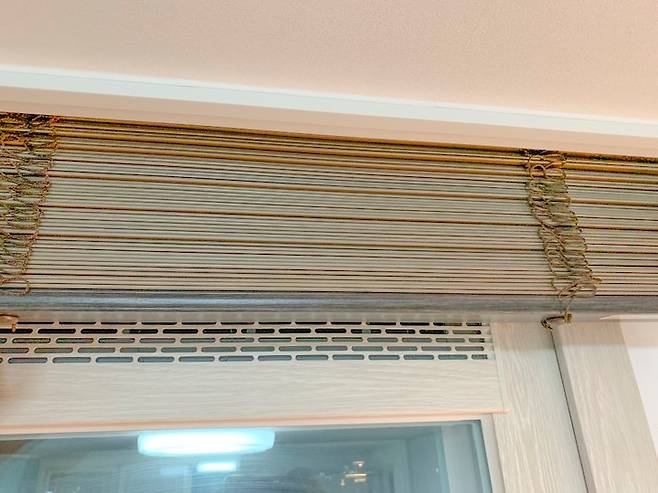 어차피 커튼을 걷을 생각이 없기 때문에 또 쉽게 바꿀 수 있게 하기 위해서 바로 다이소 '이것'을 활용합니다.
