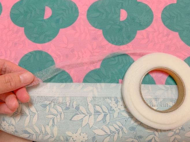 다이소 옷 수선 테이프로 마감되지 않은 부분을 정리합니다. 다이소 옷 수선 테이프는 다리미만 있으면 되는데요.
