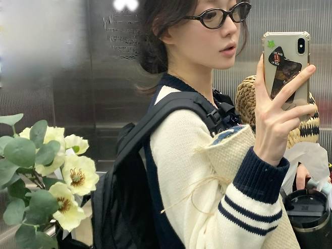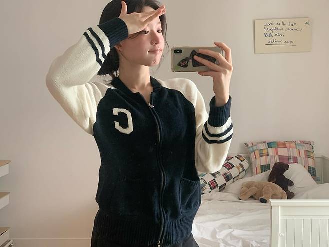 지나치게 차려입지 않은 듯하면서도 컬러 배색이 주는 선명함 덕분에 거울 셀카 속에서도 확실한 존재감을 드러냅니다.