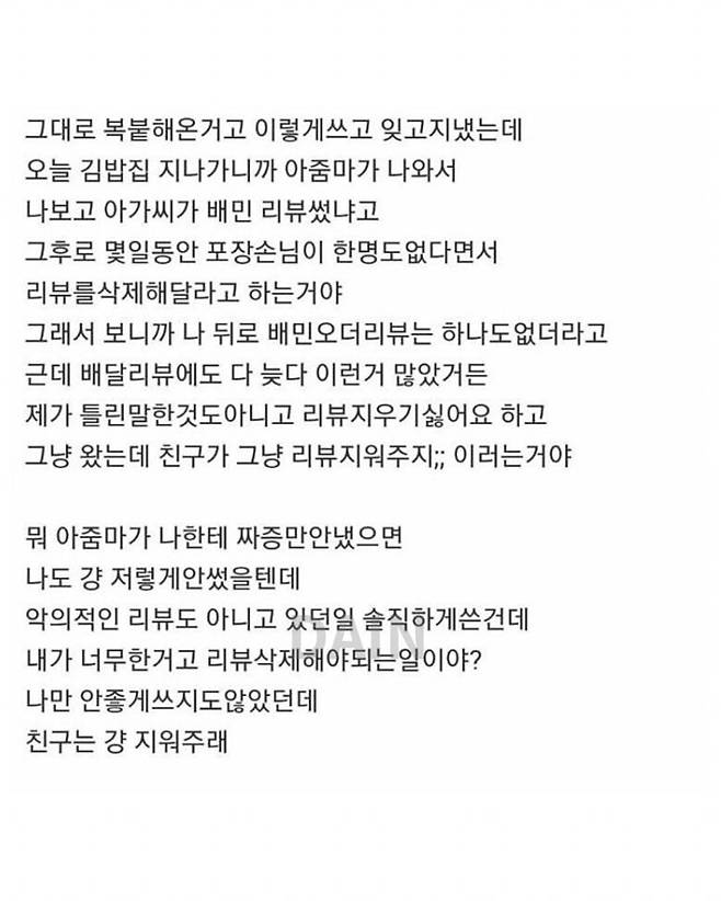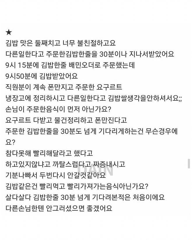 리뷰 좀 제발 지워달라는 김밥집