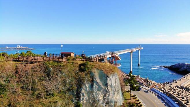 경상북도 울진군 후포면 후포리 산141-21에 위치한 ‘등기산스카이워크’는 울진 후포항 뒤편 절벽 위에 조성된 해상형 보행 구조물이다.