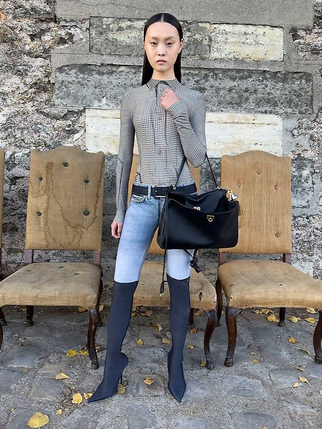 극대화해주었으며 날렵한 스틸레토 힐은 데님과 대조를 이루며 우아한 포인트가되었음!