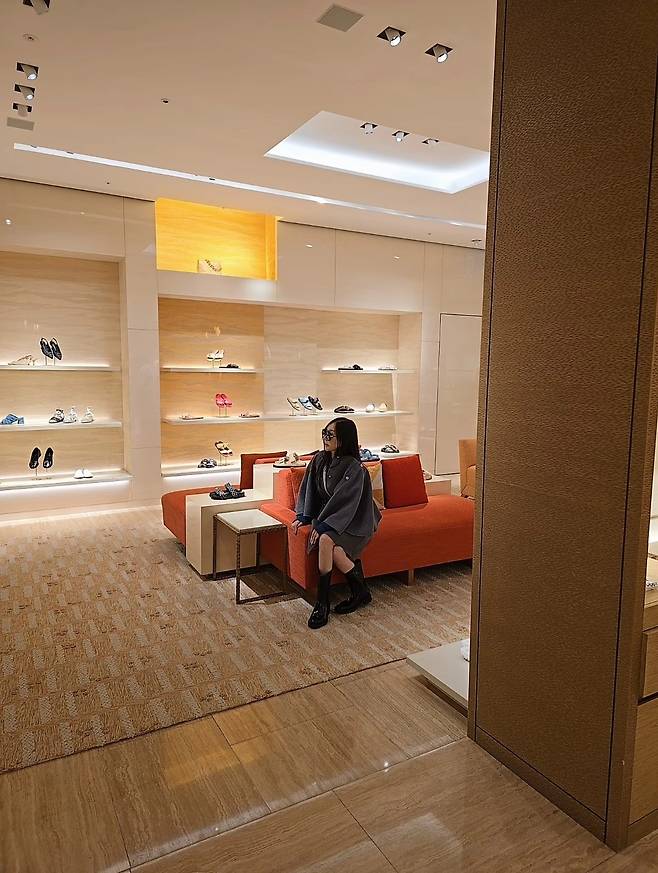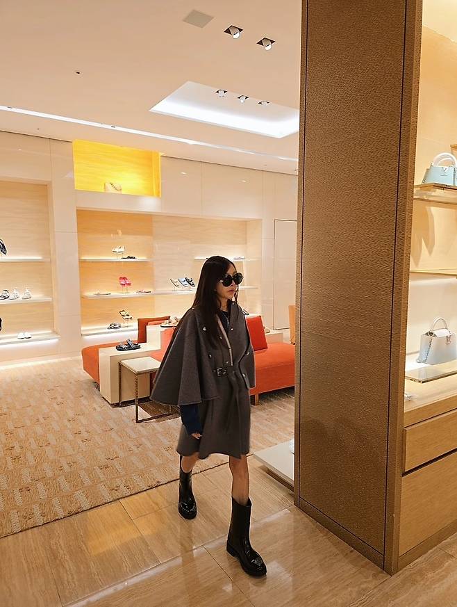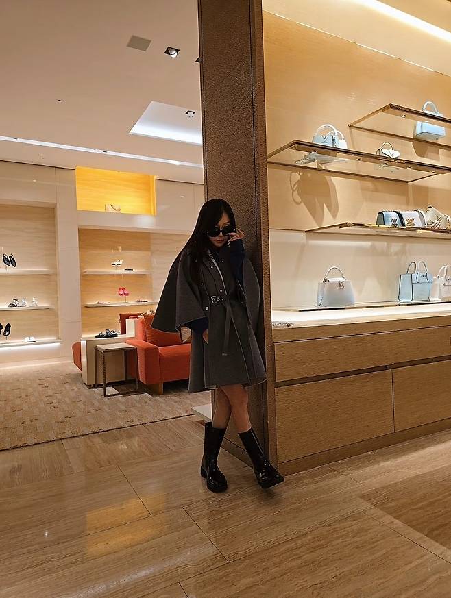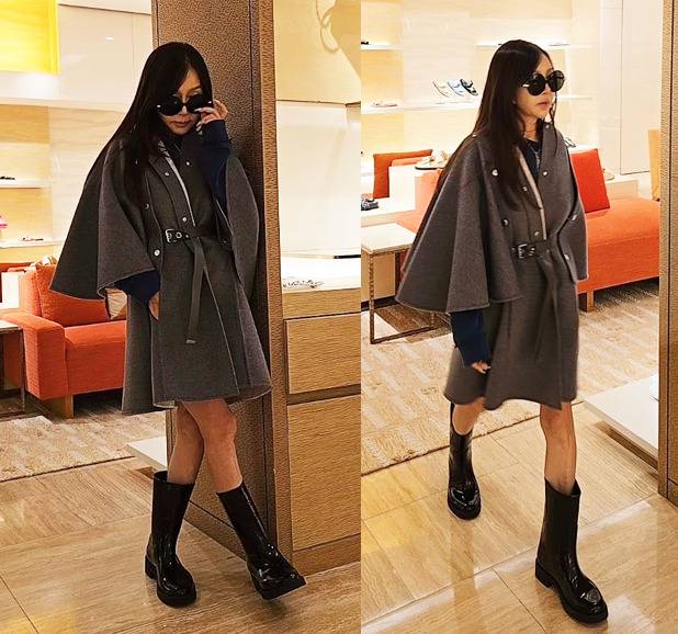 또 박준금은 블랙 부츠를 매치해 광택이 나는 소재로 고급스러운 느낌을 주었습니다.