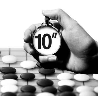 10초란 시간이 얼마나 빠른지 경험해 보지 않은 사람은 모른다. 상대가 두자마자 하나, 둘, 셋 하고 쫓아오는데 빛의 속도처럼 느껴진다. 빠른 착수 말고도 유념할 것들이 더 있다. 당황해서 돌을 떨어뜨리면 거의 진다. 바둑돌을 놓은 손으로만 시계를 누를 수 있다. 다른 손으로 누르면 반칙패. 사석을 들어낼 때는 조심해야 한다. 10개 넘는 돌을 10초 안에 들어내긴 힘들다. 자칫 판 위에 사석을 남기면 반칙패를 당한다.