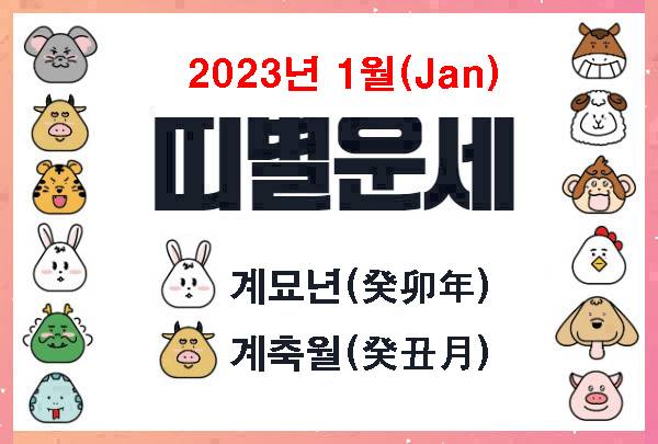 2023년(단기 4356년) 계묘년(癸卯年), "1월 계축월(癸丑月)" 운세. "더사주" 띠별 운세 제공