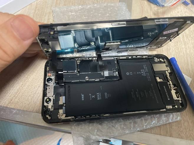 드래곤볼 모으듯 12일 만에 완성된 아이폰 XS 회춘용 디스플레이와 배터리.