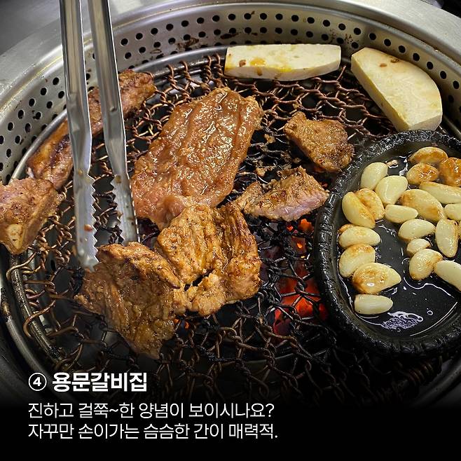 경동시장에서 제일 유명한 연탄불 갈비집! 불맛 제대로 입힌 다음 먹기 좋은 크기로 잘라 나오니 이보다 더 편한 갈비집 또 있나요? 삼치와 고등어 구이도 있으니 생선파 친구와 방문해도 OK 입니다.