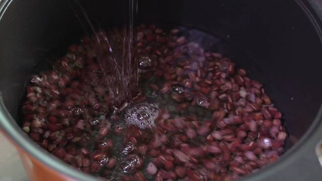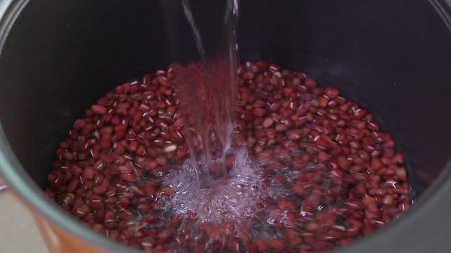 붉은팥 2컵, 멥쌀 1/2컵, 총 물 3.9L(물 500ml 팥 끓일 때, 2.4L 팥 익힐 때, 1L 팥 으깰 때)