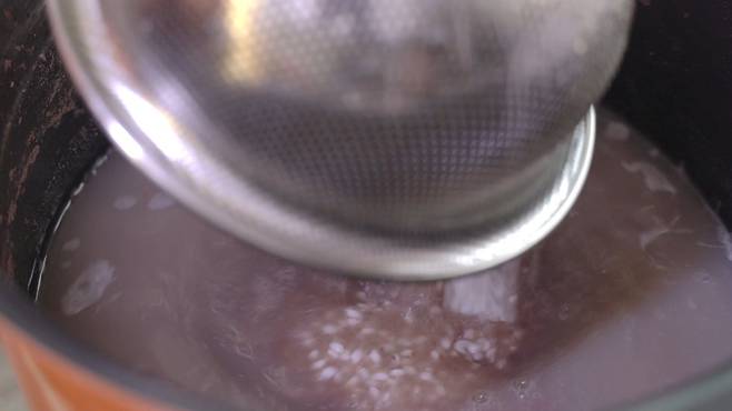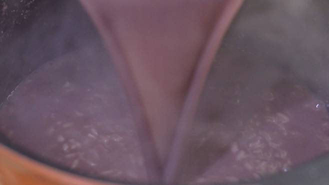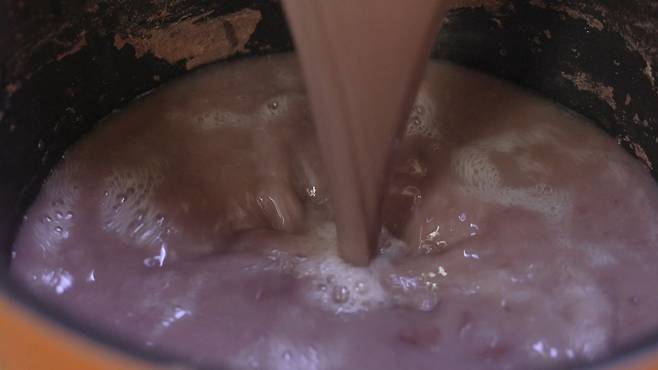 15) 쌀이 거의 익었다면, 남은 앙금물을 넣어 주세요.
