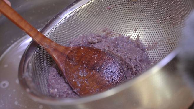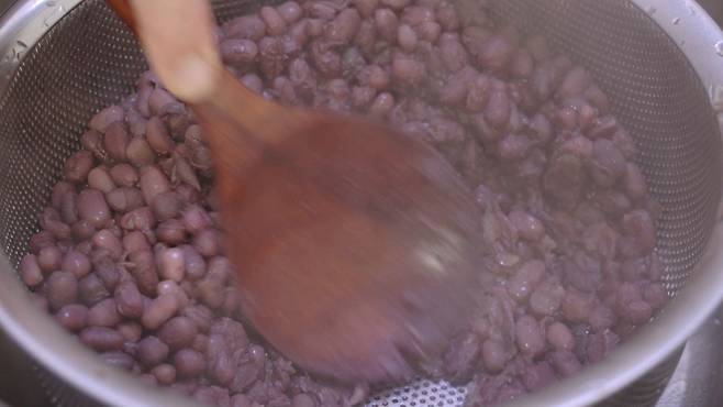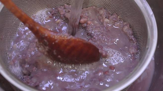9) 팥을 주걱 등으로 모두 으깨 주세요.