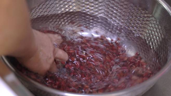 만약 돌멩이가 잘 걸러진 팥이라면 채질을 건너뛰어도 괜찮을 듯싶어요. 저는 혹시 몰라 한 번 더 했어요!