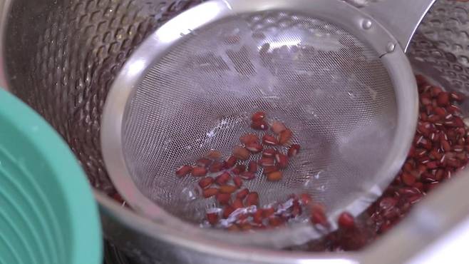 5) 팥만 따로 건져낸 후 다시 냄비에 넣어 주세요.