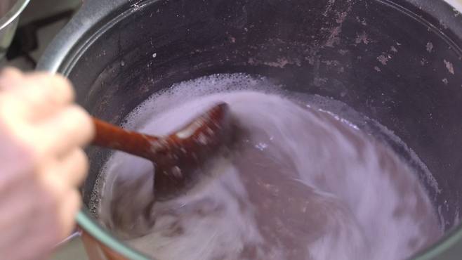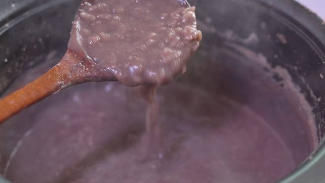 17) 팥이 되직해졌을 때 불을 끄면 완성!