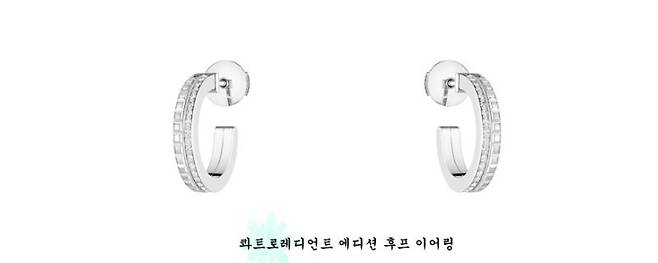 여성분들은 귀걸이 하나만으로도 이미지가 확 달라지죠. 한소희 씨가 착용한 콰트로 레디언트 에디션 후프 이어링은 그녀의 깨끗한 피부를 더욱 돋보이게 했습니다. 빛나는 광채와 정교한 세팅이 돋보이는 제품으로, 착용하는 순간 얼굴 전체가 화사해지는 느낌을 받을 수 있습니다.