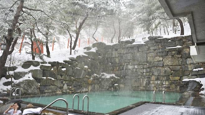 전북 무주 덕유산 중턱에 위치한 무주 리조트 노천온천탕은 그런 겨울의 낭만을 현실로 만들어주는 곳이에요.