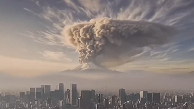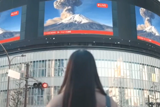이는 일본 정부가 공개한 AI 기반 영상으로, 도쿄의 2000만 주민에게 후지산이 폭발할 경우 어떤 일이 일어날지 경고하기 위해 제작됐다. 그렇다고 후지산 분화가 임박했다는 것은 아니다.