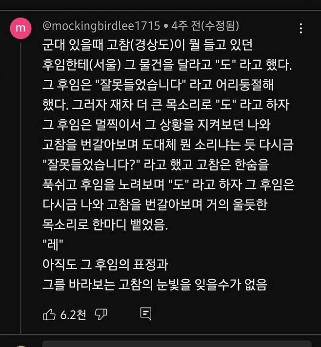 군대에서 경상도 고참 벙찌게 만든 서울 후임