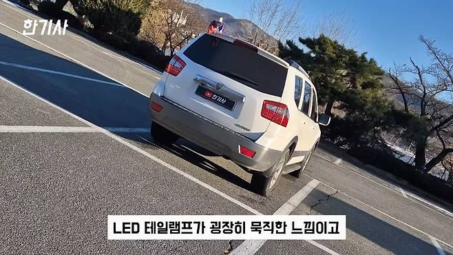 후면부 보시게 됐을 때 좌우에 단단해 보이는 느낌의 LED 테일램프가 굉장히 묵직한 느낌이고 가운데 크롬바와 모하비 전용 엠블럼의 고급진 느낌과 더불어서 하단부에 있는 범퍼 디테일들이 굉장히 든든하고 묵직한 모하비의 느낌을 살려주고 있는 것 같아요.