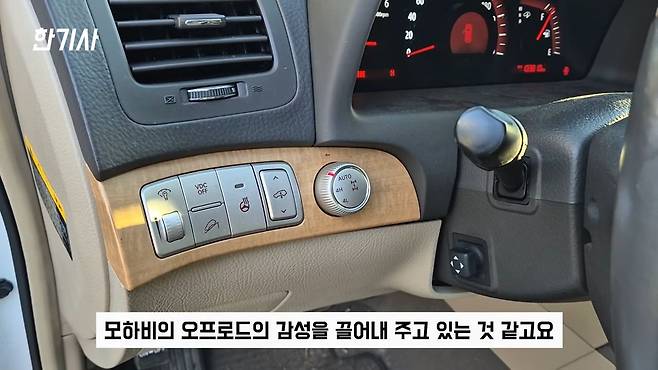 이 차량 실내 디자인이 굉장히 마음에 안 들어요. 너무 올드한 옛날 차 같은 느낌이 많이 나는데, 10년 넘었으니까 옛날 차는 맞지만 젊은 사람들이 봤을 때 마음에 들어 하지는 않을 것 같아요. 이 차량 2016년에 1차 페이스리프트가 된 버전에선 조금 더 세련되게 바뀌긴 했지만, 어찌 됐든 이전 모하비의 실내이기 때문에 굉장히 좀 단조로운 느낌이 많이 드는 것 같아요.