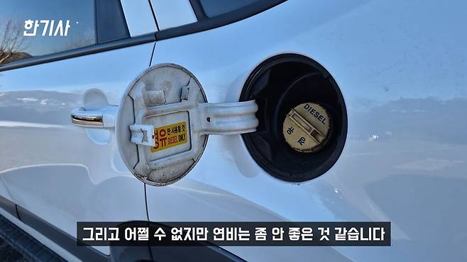 그리고 연비 같은 경우에는 시내 주행 8, 고속도로 2로 했을 때 복합 연비가 8km/L 정도 나오고요. 그리고 제가 주유를 할 때 계기판 10칸 중에 1칸 남았을 때 가득 주유를 하는데, 요새 경유값을 1,450원으로 봤을 때 한 8~9만 원 정도 나왔었던 거 같아요. 그래서 그렇게 가득 주유했을 때 총 주행 가능 거리는 667km 정도 계기판에 나와요.