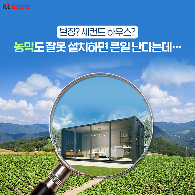 허나 세컨드 하우스의 경우, 취득세나 재산세 등 세금 문제가 만만치 않은데요. 이런 이유로 농촌 생활을 꿈꾸는 사람 사이에 농막이 인기를 끌고 있습니다. 얼마 전에는 모델 한혜진이 본인의 유튜브 채널에서 농막을 소개해 화제가 되기도 했는데요. 하지만, 이런 농막도 잘못 지으면 불법 건축물이 될 수 있다는 사실 아시나요? 금일 KT에스테이트에서는 요즘 핫한 농막이란 무엇이고, 설치 시 무엇을 주의해야 하는지를 알아보겠습니다.