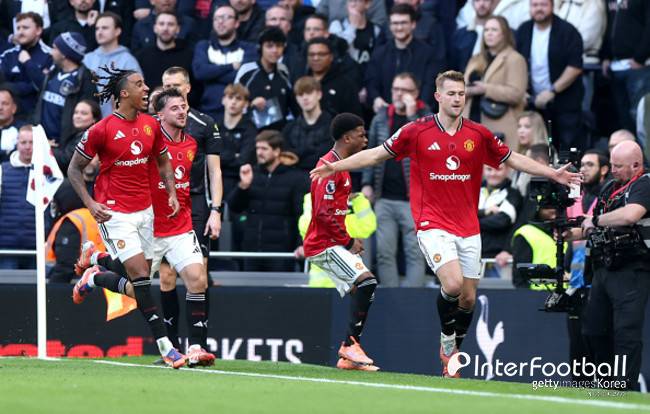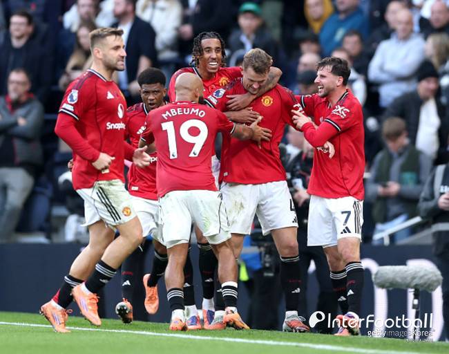 [PL REVIEW] 더 리흐트 극장골! 맨유, 토트넘 원정서 2-2 극적 무승부…5경기 연속 무패 행진