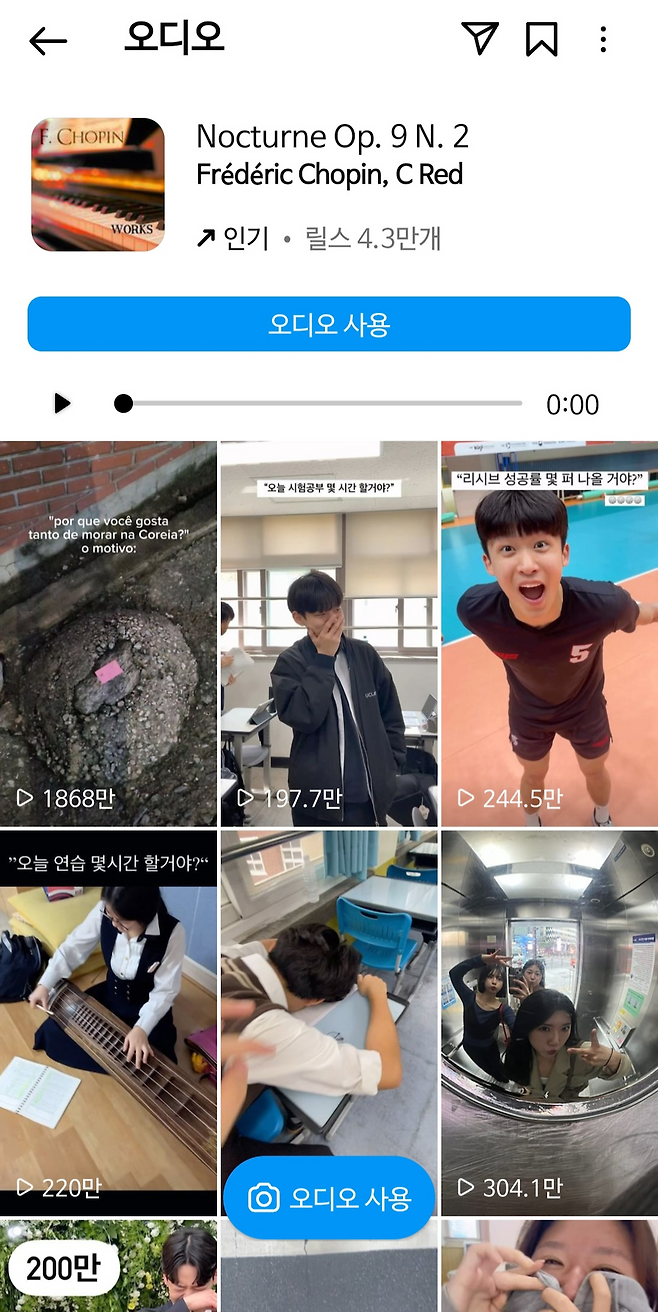 이 숏폼이 유행하면서 처음엔 원조 질문대로 학생들 사이에서