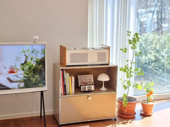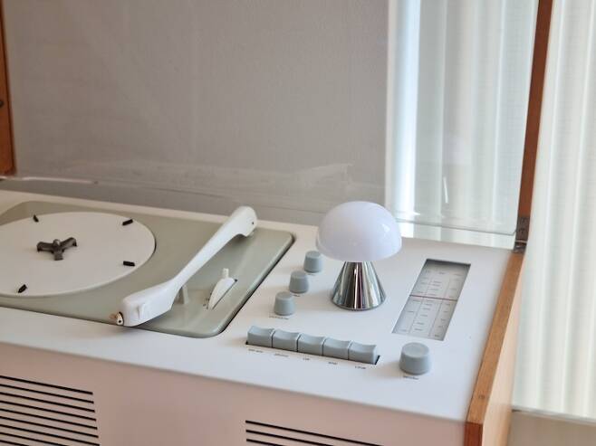 이 집으로 이사를 결심하고 가장 먼저 턴테이블을 구입했어요. 너무나 유명한 브라운사의 디터람스가 디자인한 진공관 오디오입니다. 턴테이블의 나무 패널이 집안 곳곳의 우드톤과 잘 어울린다고 생각했어요. 60년도 더 지난 빈티지 오디오를 구입하기 위해 디터람스의 디자인 서적, 영화를 보고 전시회를 다니며 탐구할 정도로 푹 빠져있었어요.
