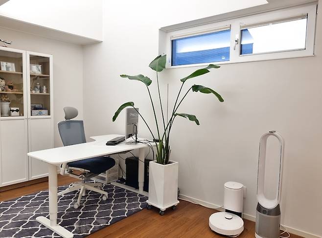 서재 방이 출발점인 로봇 청소기는 2개의 도면을 그릴 수 있어요. 복층 집에서는 꼭 필요한 제품이죠. 계단 난간 부근까지도 깔끔하게 청소해 주네요. 이 집에 온 이후로는 공기청정기의 사용 빈도가 줄었어요. 집안 구석구석의 창문을 열고 환기를 자주 시켜주어서인 것 같아요.