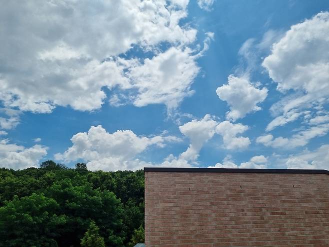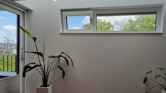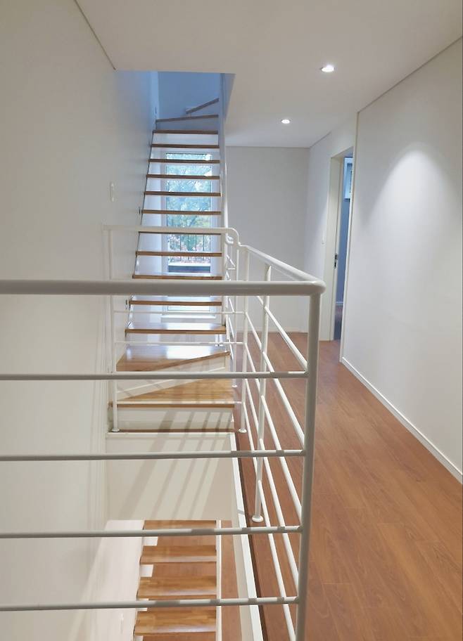 2층과 3층 계단 사이에 긴 창이 하나 있어요. 날씨가 좋은 날이면 계단을 오르다가 한 폭의 그림 같은 하늘을 감상할 수 있어요.