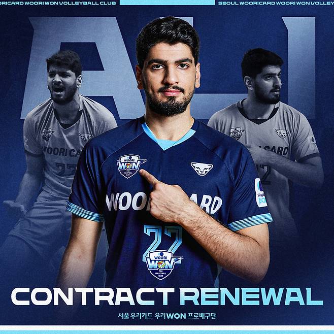 우리카드 우리WON 배구단(이하 우리카드)이 아시아쿼터 선수 알리 하그파라스트(등록명 알리)와 재계약을 체결했다.