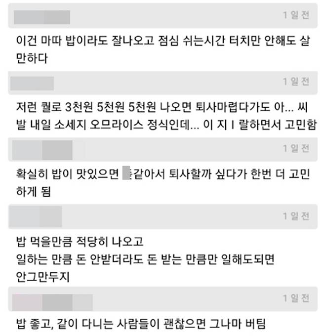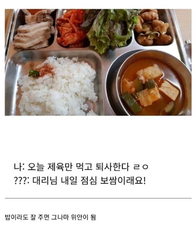 한 커뮤니티에 ‘직원 퇴사율을 낮추는 꿀팁’ 게시물이 직장인들의 공감을 받았다. 개인적으로 매우 동의하는 바다. 밥이 맛있으면 정말 일할 맛 난다. 상사한테 깨져도 진수성찬으로 점심을 먹으면 조금은 기분이 나아진다. 맛있는 밥을 먹기 위해서라도 꼬박꼬박 출근해야겠다는 결심을 한다.