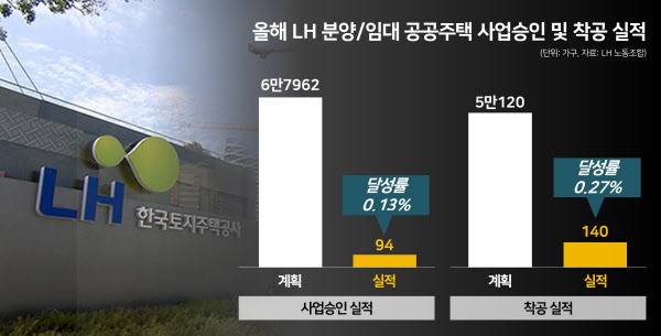 그런데 취임 후 지난 2년 동안 LH 주택 공급 실적이 형편없다. 올해 상반기까지 달성률이 14.4%(14만8000여가구)에 불과할 정도다. 과거 2017~2020년에는 LH가 매년 평균 6만7000여가구 사업승인하고, 7만1000가구 착공했는데 실적이 바닥으로 곤두박질 친 것이다. 특히 올해 들어 7월 중순까지 실적은 분양·임대주택 사업승인 및 착공 실적이 모두 목표치의 1%에도 못미치고 있다.”