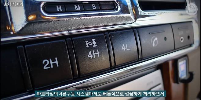파트타임의 4륜구동 시스템마저도 버튼식으로 깔끔하게 처리하면서 높은 시트 포지션 같은 SUV 특유의 몇몇 포인트를 제외하면 여느 고급 세단의 실내라고 해도 이상할 게 없었어요.