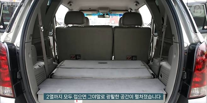 3열 공간 역시 당시 기준으로는 제법 쓸만했습니다. 3열 승객을 위한 별도의 공조장치가 추가된 것, 2열이 슬라이딩이 아닌 더블 폴딩 방식이다 보니 타고 내리는 데는 다소 불편했지만, 미니밴 같이 정방향 배치로 싼타페의 '생각하는 의자'처럼 수치감을 들게 하지도 않았고, 특히 갤로퍼와 다를 바 없던 경쟁차 테라칸의 3열보다는 훨씬 나았죠.