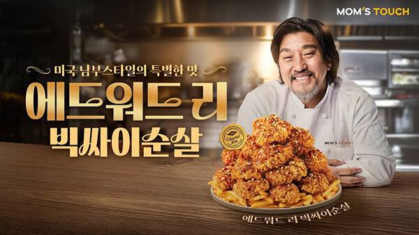 맘스터치는 에드워드 리 셰프만의 특제 소스를 적용한 순살 치킨 ‘에드워드 리 빅싸이순살’을 출시했다. 신제품은 에드워드 리 셰프 컬렉션의 첫 치킨 라인업으로, 그가 직접 개발한 특제 리얼 버번 소스와 육즙 가득한 100% 닭다리살의 맘스터치 빅싸이순살 치킨의 황금 비율 조합 메뉴다. 최상의 식감과 풍미 유지를 위해 치킨에 격자 모양으로 소스를 가볍게 뿌려 올린 골든 레이어링 방식을 적용했다. 레귤러 사이즈의 매장 판매가는 14,900원이다.