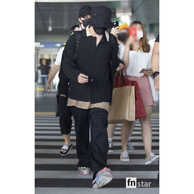 블랙 셔츠 + 팬츠 +버킷햇으로