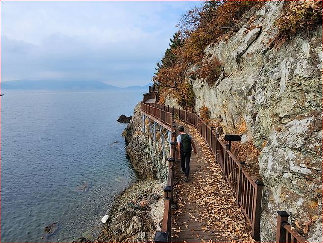 초입에는 해안공사가 진행 중이었지만, 나무데크길이 시작되면 바로 시원한 바닷바람이 반겨줍니다.