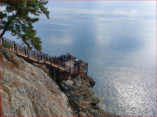 비치로드의 매력은 ‘바다와 산을 동시에 걷는 길’이라는 점이에요. 푸른 해안을 따라 걷다 보면 어느새 숲 속으로 들어서고, 신선한 공기와 함께 녹음이 짙은 오솔길이 펼쳐집니다. 잠시 후 나타나는 제1 전망대에서는 멀리 구산면 해안선과 바다가 한눈에 들어오며, 탁 트인 풍경에 마음까지 시원해집니다. 이후 길은 다시 나무데크를 따라 제2·3·4 전망대로 이어지며, 각각의 전망대마다 다른 각도에서 바다를 즐길 수 있습니다.