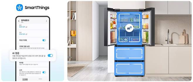 새롭게 AI 정온 모드가 추가되었다. 사용자의 사용 패턴에 맞춰 적정 온도를 유지하는 모드로 온도 상승 폭을 최소화하여 식재료를 더욱 신선하게 보관할 수 있게 해준다. 예를 들어 사용자가 김치냉장고를 자주 사용하면 집중 냉각 모드로, 적게 사용하면 효율 모드로 전환하여 김치냉장고 내부 온도 상승을 최소화한다. 상칸부터 하칸까지 모두 AI 정온 모드를 사용할 수 있는데 스마트싱스 앱에서 AI 정온 모드를 활성화 해야 기능을 쓸 수 있으니 참고하자.