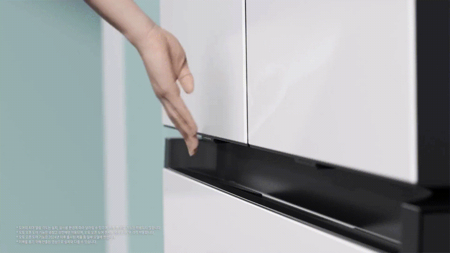 삼성의 최신 양문형 냉장고에 탑재되던 오토 오픈 도어 기능이 신형 김치냉장고에 들어갔다. 도어부 센서를 가볍게 손으로 터치하면 상칸 도어가 자동으로 열리는 기능으로 무거운 김치통이나 냄비 등을 들고 있을 때 활용하기 딱 좋다. 만약, 최신 김치냉장고를 알아보고 있다면 오토 오픈 도어 기능을 지원하는지 체크해보자. 참고로 자동으로 문이 열릴 뿐 닫히지는 않는다.