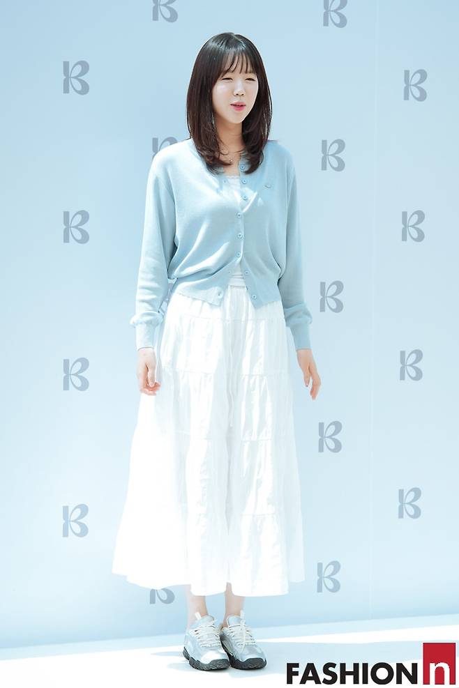 이날 지예은은 퓨어한 색감에 깔끔한 실루엣 조합으로 상큼한 여름 스타일을 완성했다.